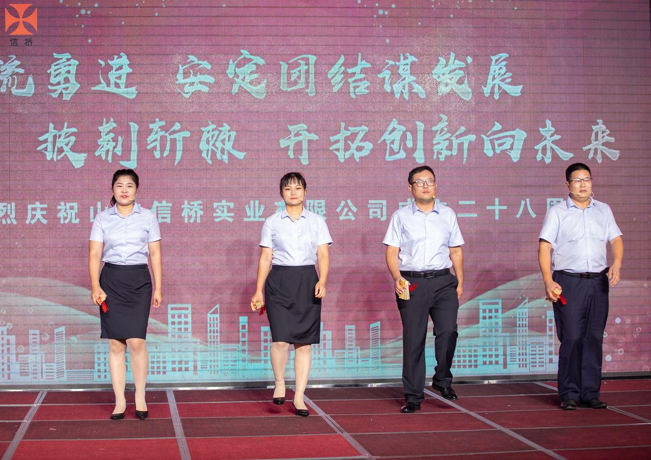 歲月如歌,風霜如畫,二十八年彈指一揮間,山東信橋實業(yè)有限公司(以下簡稱山東信橋)迎來了二十八周歲的生日。二十八年來,信橋人在激烈的市場競爭中奮力拼搏、砥礪前行,接受了市場風風雨雨的洗禮,取得了累累碩果。為了慶祝這一特殊的日子,2022年8月8日,以“激流勇進,安定團結謀發(fā)展 披荊斬棘,開拓創(chuàng)新向未來”為主題的山東信橋二十八周年慶典活動在寶盛大酒店舉行。
